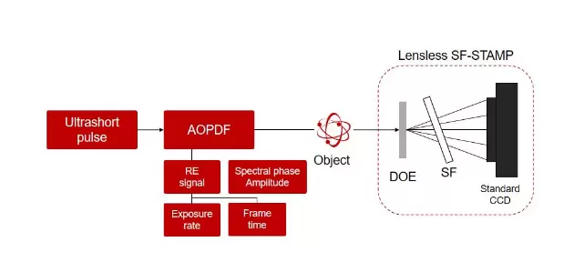 数字同轴全息术(DIH)的使用还可以通过其无透镜操作使系统更加简单,而且还允许在宽景深上重建和定位物体,与目前仅在单个平面中提供图像的传统超高速成像技术不同。DIH因为它不需要参考复杂的重建算法,可以实现实时操作。此外,与传统超高速成像技术相比DIH的优势是,它允许沿着单一视线快速跟踪物体。然后在SF-STAMP超快成像,利用AOPDF脉冲校准功能和DIH简单性,并实现帧速率、曝光时间和帧强度的独立控制以及超短光的超快成像。