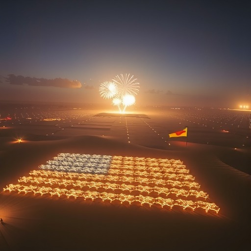自成立以来,大漠大公司始终坚持技术创新和产品迭代,其无人机编队灯光秀已连续五年登上央视春晚,成为国内外观众津津乐道的视觉盛宴。在国际舞台上,大漠大也屡获殊荣,曾作为国家科技名片参加迪拜世博会,向世界展示了中国智造的魅力。随着自身快速发展,大漠大不断刷新吉尼斯世界纪录,从最初的3051架无人机同时飞行,到现在的10197架无人机同时飞行,每一步都见证了大漠大技术的飞跃。公司还致力于行业标准的制定,推动了无人机编队灯光秀技术的发展和规范化。