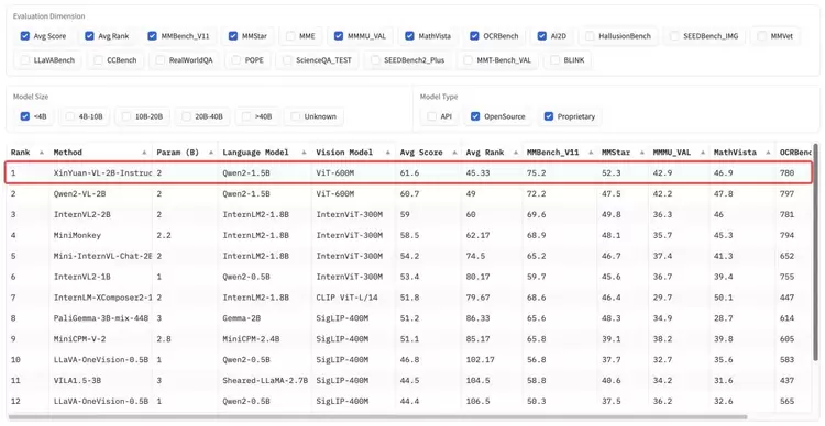 基于此,心元大模型构建了全流程自动化的多模态数据治理系统,涵盖数据合成、图文匹配、质量打分、安全筛选等多个层面,沉淀出亿级的图像描述数据以及千万级的多模态指令微调数据。为了充分适配开源社区生态,心元大模型依托阿里云开源的Qwen2-VL进行了Post-Training,在全球知名的综合性多模态大模型OpenCompass司南榜单中经官方核验后表现亮眼,最终实现如下效果: