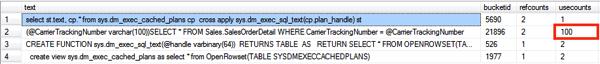 现在事情变得有点疯狂:在计划缓存里我们存储了100个不同的执行计划!