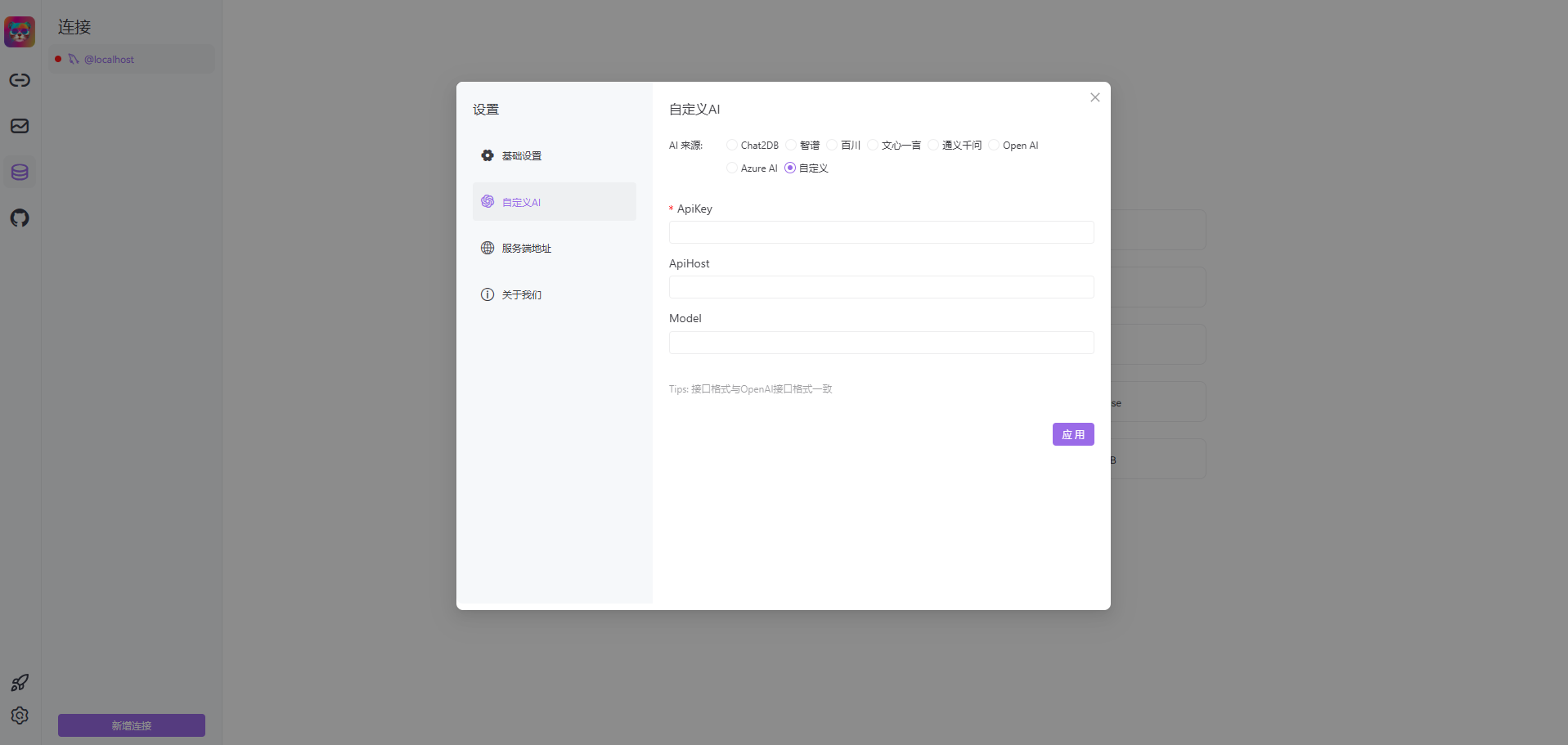 - 多 LLM 模型适配:支持集成多款大语言模型,提供 AI 输入交互实现 SQL 编写、数据分析、报表生成等功能